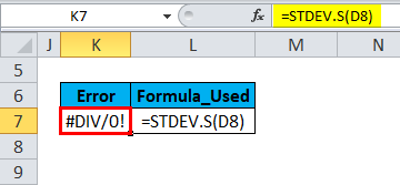 - To calculate Standard Deviation in Excel, the number argument must contain at least two or more numeric values. If there are less than two numeric values in the number argument, then we won’t be able to calculate standard deviation at all. Excel will show an error message: #DIV/0!