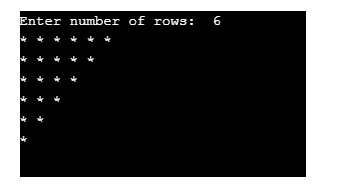 In the following C++ program, the user can enter the number of rows to print the inverted half-star pyramid pattern as he wishes, then the result will be displayed on the screen: