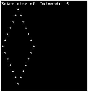 In the following program, the user can enter the number of rows for the diamond dimension to print the diamond pattern as he wishes, then the result will be displayed on the screen: