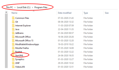 - If you check the C Drive, you can see the StarUML folder in the program files location.