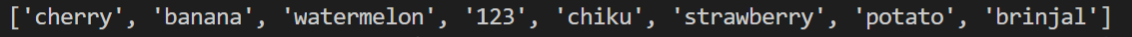 When there is a need for order and a requirement of frequent change, we prefer selecting the list. Another feature of the list is it allows duplicates. Here is a simple example of a list.