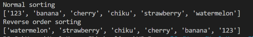 Output: Here, we see the default sorting and, in the other, the reverse of the previous one.