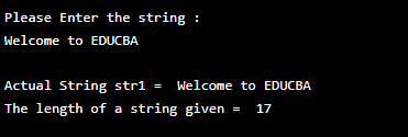 In this example, we have got the statement from the user as input in a string format inside the str1 variable using the input() function in Python. We have written the code to print the input statement along with the length of the statement where the statement we gave has 17 characters, and depending upon the input, the length of the string varies. This method can be beneficial in optimizing our code by checking the length and value of the strings we declare.