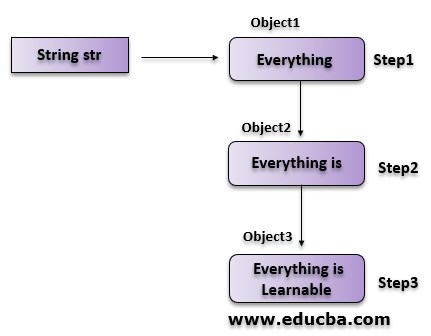 StringBuffer is Mutable: Object of StringBuffer is mutable, i.e. performing modifications on the string using StringBuffer will not create new objects in the memory, but it will update the content of string in an existing object.