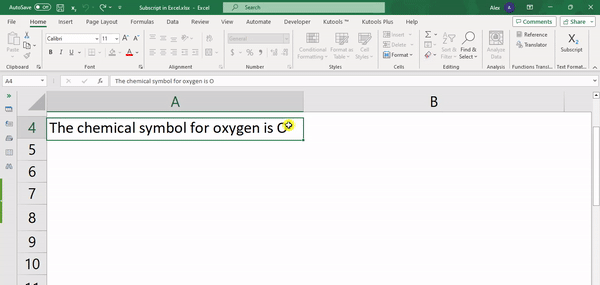 Imagine you have several characters in a cell that you want to make smaller and lower. Kutools for Excel has a subscript tool that can do this easily. Instead of changing each character individually, this tool lets you select the characters you want and turns them into subscripts simultaneously.