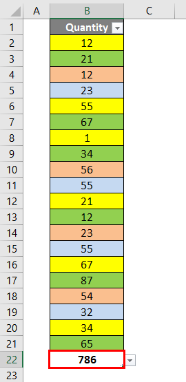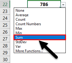Once we do that, we will get the sum of cells at the bottom end of the column with a drop-down menu. Here we are getting a sum of 786.