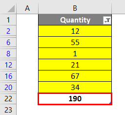 Once we do that, we will get the Output cell filtered sum as 190, as shown below.