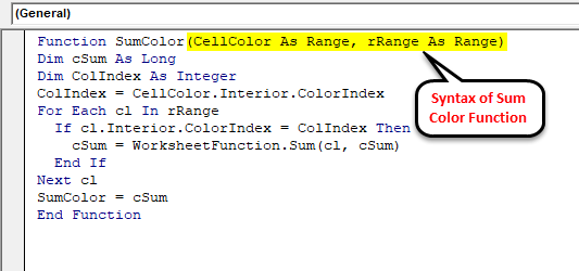 This will open a new Module to write code. Now in the blank Module, write the code for enabling the sum by color function in Excel, as shown below. You can also use the same code to make some changes in that.