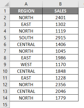 - Criteria: It is a parameter or a condition that indicates the SUMIF function in which cells in a range need to be summed or added up; here, I want the sum of sales value for the North region only; hence we need to enter text criteria, i.e., “NORTH.”