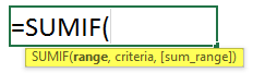 The SUMIF function syntax or formula has the below-mentioned arguments: