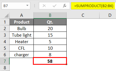 SUMPRODUCT Formula in Excel is very simple and easy to use. Let us now see how to use the SUMPRODUCT Formula in Excel with the help of some examples. These examples will surely help you with a clear understanding of the function.