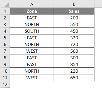 Here we have another example in which we have sales data per zone, and we want to know the sales for a particular zone, say West zone.