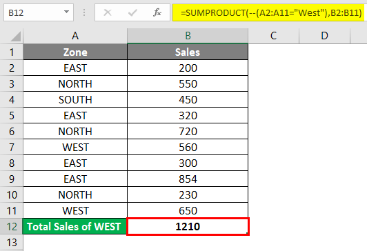 For this, we will write the SUMPRODUCT formula in Excel as below: