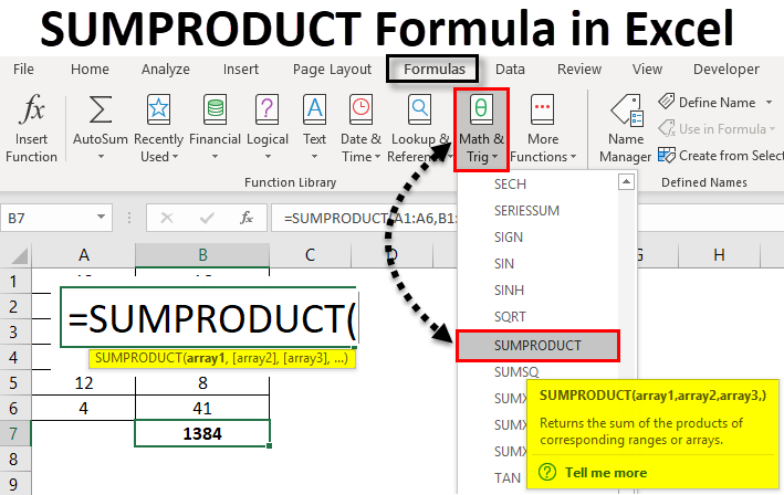 SUMPRODUCT formula in Excel is a function that simultaneously does multiplication and sum of cells. This formula multiplies the cell range/arrays and returns the sum of products in Excel.