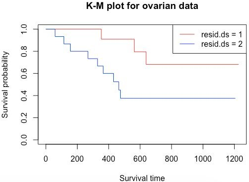 ovarian$resid.ds <- factor(ovarian$resid.ds, levels = c("1", "2"),