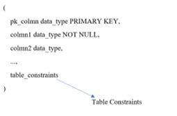 Step 4: In this step, the table we will create can have the primary key that may carry out more than one column. Generally, we can index the primary key column first and other columns after that; if the primary key column carries one column, then we can able to utilize the ‘PRIMARY KEY’ keyword next to the column name, and if the primary key contains more than one column then we have to describe ‘PRIMARY KEY’ constraint as a table constraint, every column of the table can have particular data type next to its name in the statement. A column can have more than one column constraint, such as ‘NOT NULL,’ ‘UNIQE,’ and ‘CHECK.’