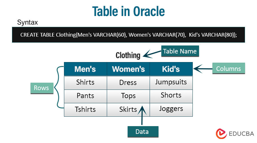 We hope this EDUCBA information on “Table in Oracle” benefited you. You can view EDUCBA’s recommended articles for more information.