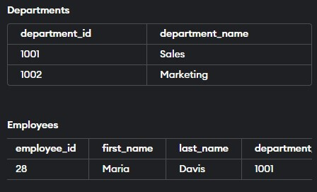 The attempt in the last INSERT statement to insert an employee with a department_id that does not exist in the department’s table will result in an error owing to the FOREIGN KEY constraint.