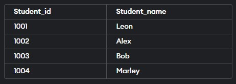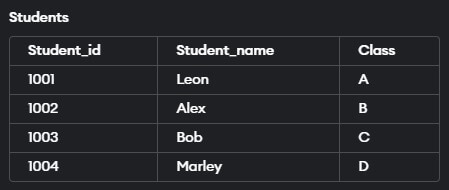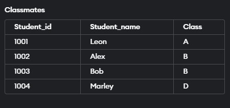 Now let us take an example to understand better. In this example, we will create a Student table with three columns named Student_id, Student_name, and Class.