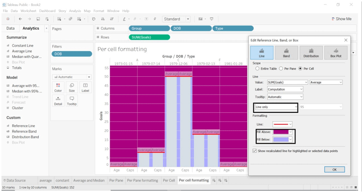 - Per pane formatting (worksheet)- Scope as Per Pane. The average is calculated on Per Pane concerning the dimensions and measures we have selected from the dataset.