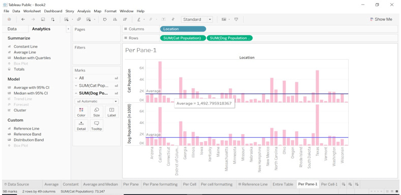 - We have created a dashboard for showing different views in one sheet, i.e. Dashboard. We can see how average differs as per the Entire Table, Per Pane, and Per Cell.