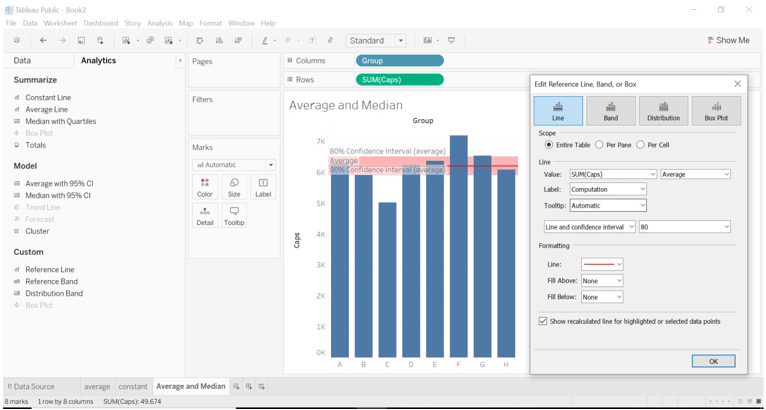 - When we select the value as Average, we changed Line only change to the Line and confidence interval.