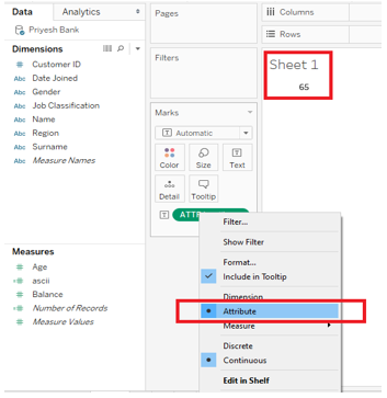 Note: Make sure you select “Attribute” by right-clicking on the calculated field to get the desired result. As shown in the picture below.