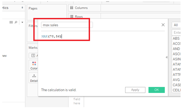 Tableau calculation field editor also let us know whether our calculation is valid or not, you can see this indicator at the bottom of the editor.