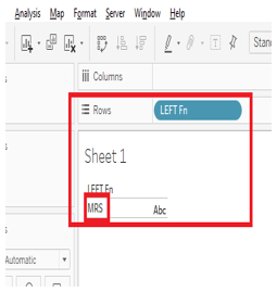 In the below screenshot we can see when the calculation field “LEFT Fn” was drag and dropped in the sheet we got the result as MRS only as get wrote ‘3’ in our function.