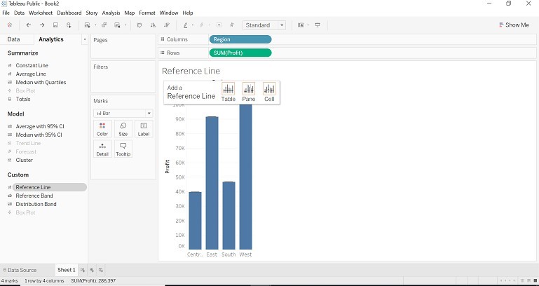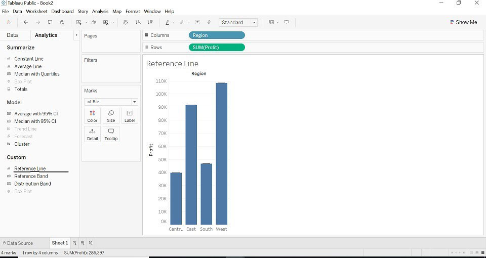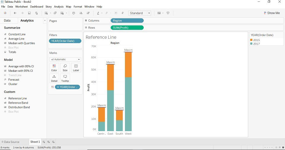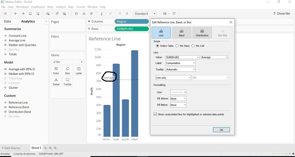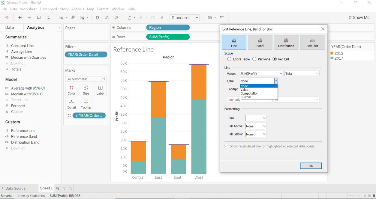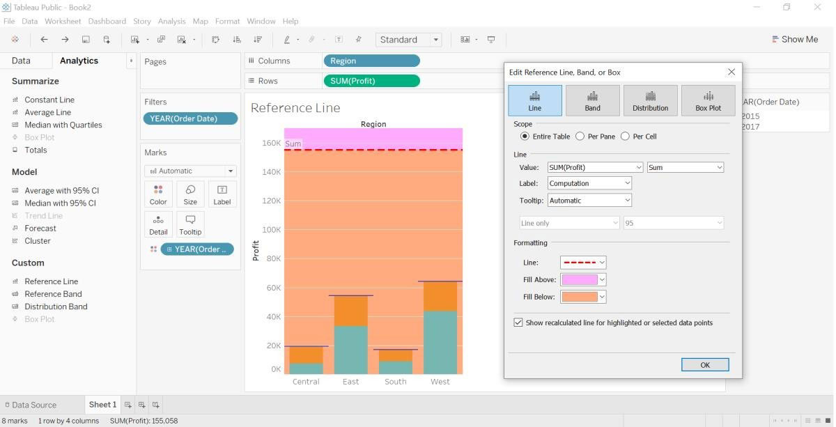 - Sum: Sum will position line at the sum of the selected measure. (Profit)