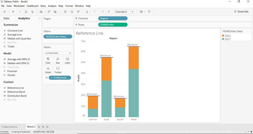 - Minimum: Minimum will position line at the minimum of specific measure. (Profit)
