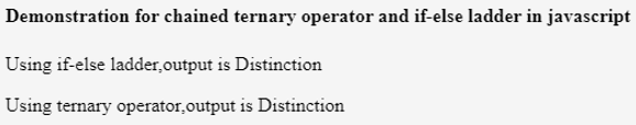 <h4>Demonstration for chained ternary operator and if-else ladder in javascript</h4>
