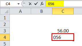Now the movement, we move the cursor to the next cell; Excel will automatically clear the leading zeros. Then what is the solution if we want to add the leading zeros? The answer is TEXT() Formula.