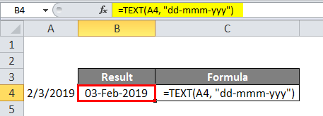 Observe the above screenshot. The text format is “DD-MMM-YYYY”, and the result is 03-Feb-2019. First, we assume the date is 02 – Mar -2019, but after applying the formula, we learned it is 03 – Feb – 2019.