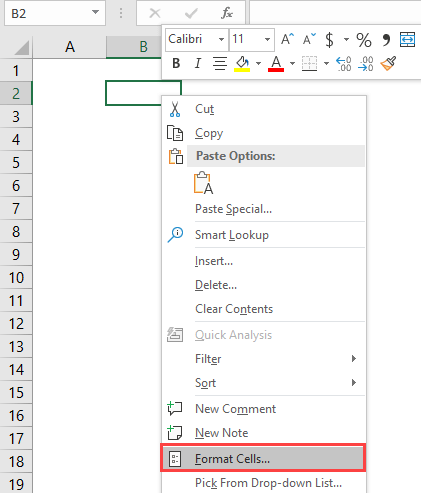 Press the right-click button on the mouse. Click on the Format Cells Option.