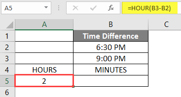 Write the formula as “= HOUR( B3-B2) “to calculate the exact hours irrespective of the minutes and seconds.