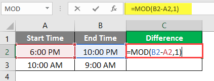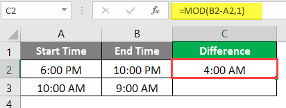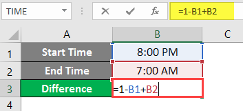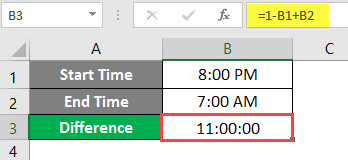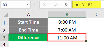 - For example, if the start time is 8:00 pm on Day 1, and the end time is 7:00 am on Day 2, the start time becomes greater than the end time, then the (end time – start time) formula will give a negative value.