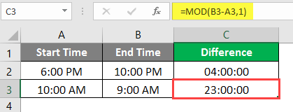 - The formula will work only with the data within a 24-hour time frame. It does not work if the end time and start time difference are more than 24 hours.
