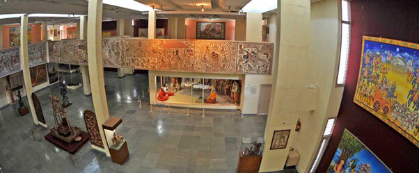 There are paintings depicting the conflict between the Pandavas and the Kauravas in Kurukshetra. Information regarding the weapons used by the Yodhas mentioned above is also present.