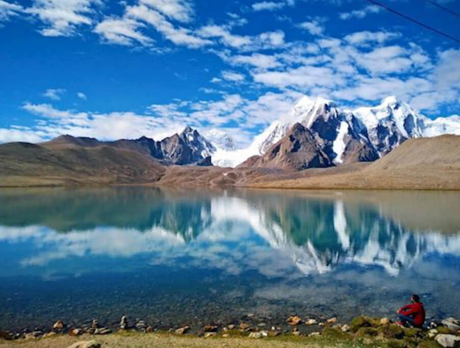 Gurudongmar Lake is at 17,800 feet from sea level. You can see Yaks and Blue sheep around this lake. This lake is considered holy by three religions- Hindu, Sikh, and Buddhist.