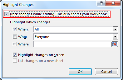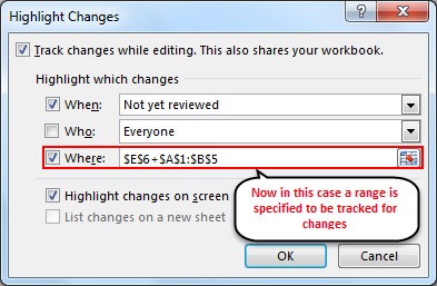 Step 6: Now, we have to choose to track the changes in the whole sheet or some part of the sheet.