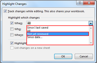 Step 4: Now, we have to select the criterion for viewing the changes made in the file. This option will allow the user to filter the changes by date, not yet reviewed, etc.