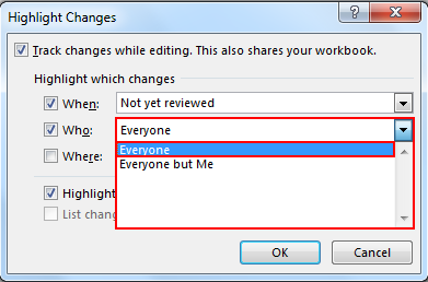 Step 5: If we only want to track changes that only a specific user makes, then we can use this option. This feature is important when we only want to track changes made by some specific person. This specific person can be the manager of the team.