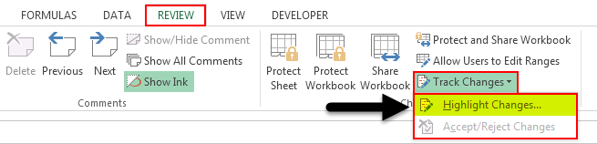 Step 1: Go to the REVIEW tab and click on Highlight Changes.