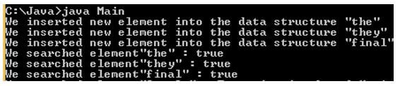 - There is a function for insertion operation ‘trie_insert’ () as well as for searching elements from the trie data structure as shown in the above program. At the end of the program, we just call the insert and search function with different values that we need to insert and search in the trie data structure.