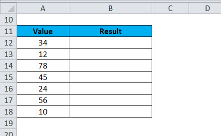 Now we will see the use of a TRUE function with an IF function. We want to check if the below values are greater than 30.