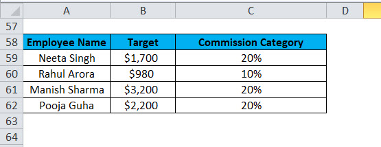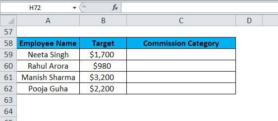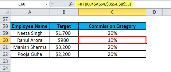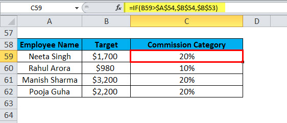 Now we have to calculate the commission of sales employees based on the target achieved by them. Here we will use the IF function.