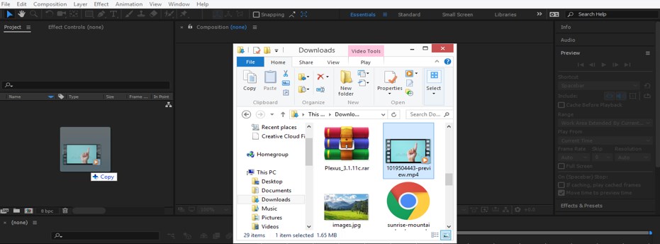 Step 2: Now, let us import video footage in this software for making the slow-motion of that video footage by using the Twixtor plugin. You can use your video footage or download it from the internet for your learning. I will download video footage from the internet. For placing this video footage in After Effects software, go to that folder of your personal computer where you have saved it and place it in the Project panel section of this software by using the pick and drop method from that folder.