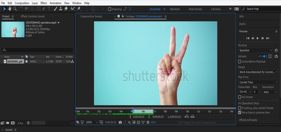 Step 3: Now make double click on video footage; a Footage frame setting window will be open in the composition window section.