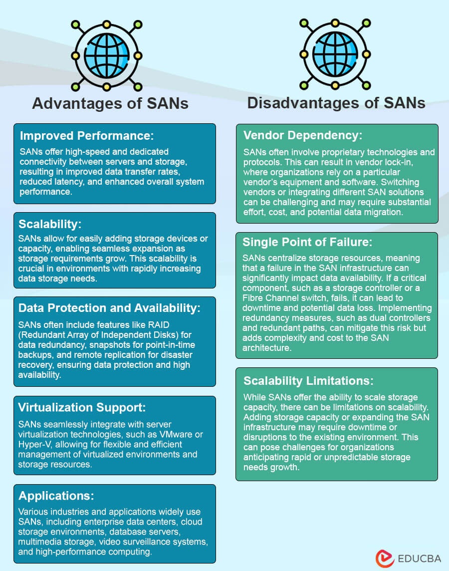 - Storage Management Software: SANs employ storage management software for tasks such as provisioning, volume management, data replication, and backup. These software tools provide centralized control and monitoring of the SAN infrastructure.